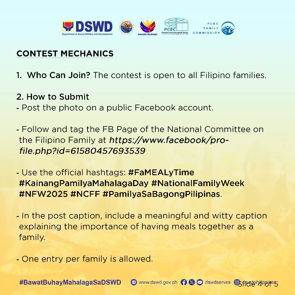 Ibahagi ang inyong masayang larawan ng pagsasalu-salo at kwento kung bakit mahalaga ang sabay-sabay na pagkain ng pamilya.